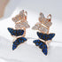 Butterfly Drop Earrings in Rose Gold with Blue and Crystal Accents