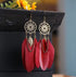 Dreamcatcher Feather Earrings in Antique Gold and Crimson
