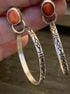 Floral Engraved Hoop Earrings with Coral-Toned Stone