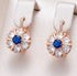 Rose Gold Earrings with Blue Center and Crystal Halo