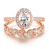 Vintage Rose Gold Halo Ring Set with Oval Crystal
